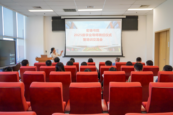 导师制是宏德书院推进拔尖创新人才培养模式改革,提升人才培养质量和水平的重要举措之一。为明确宏德书院学业导师工作职责和要求,分享交流指导经验,宏德书院于9月24日下午,在图书馆402研讨室举行2025级学业导师聘任仪式暨培训交流会,会后全体导师对书院新生开展军训慰问。活动由教务处副处长兼宏德书院副院长侯虹主持。