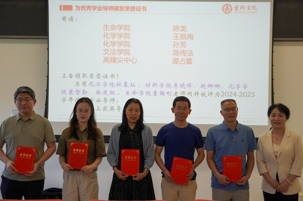 在2024-2025学年中,学业导师较好地履行了导师工作职责,兢兢业业,无私投入, 在学生思想引领、学术指引、学业指导、发展规划等方面发挥着重要作用,受到学生广泛认可和欢迎。为表彰先进,树立榜样, 经过导师自评、学生评价和书院导师考核小组组织综合评审等环节,评选出书院2024-2025学年优秀学业导师。侯虹宣读表彰决定并为优秀学业导师颁奖。