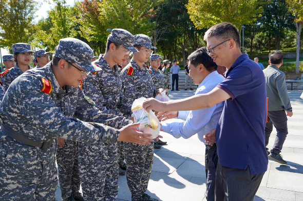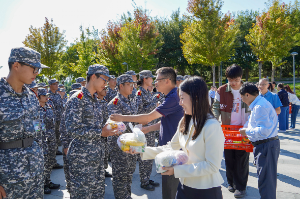侯虹对书院军训学生做慰问讲话。她指出军训是大学生活不可缺少的一门课程,更是学生培养吃苦精神,加强团队合作能力的重要方式,同时,对书院学子不惧困难,迎难而上的勇气与毅力表示肯定与赞赏,希望同学们在未来的学习生活中也能将这份精神发扬光大。