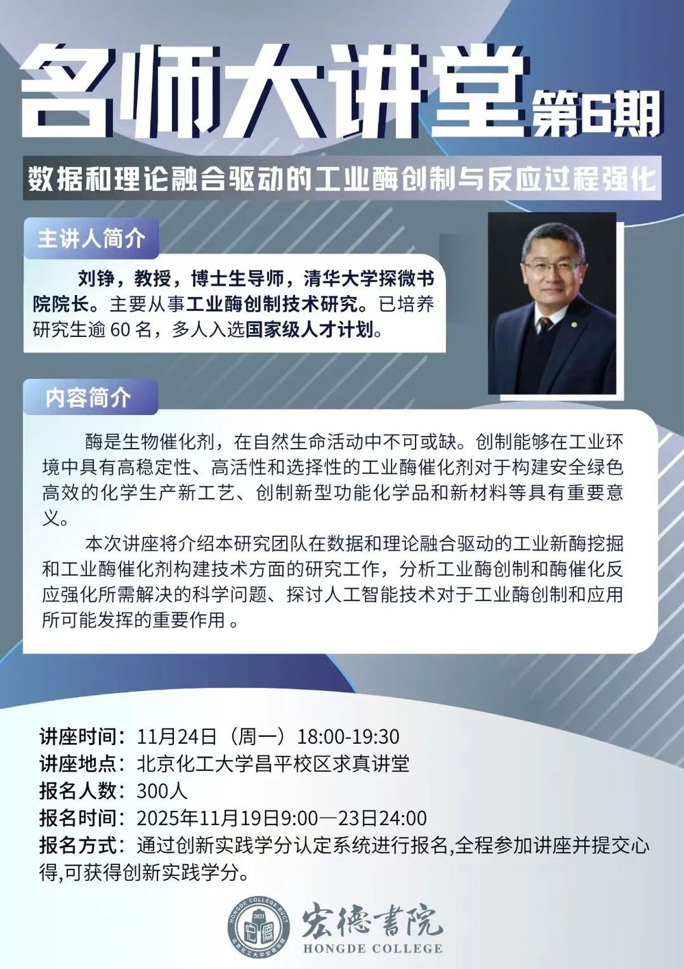 名师大讲堂 | 第6期报名:数据和理论融合驱动的工业酶创制与反应过程强化