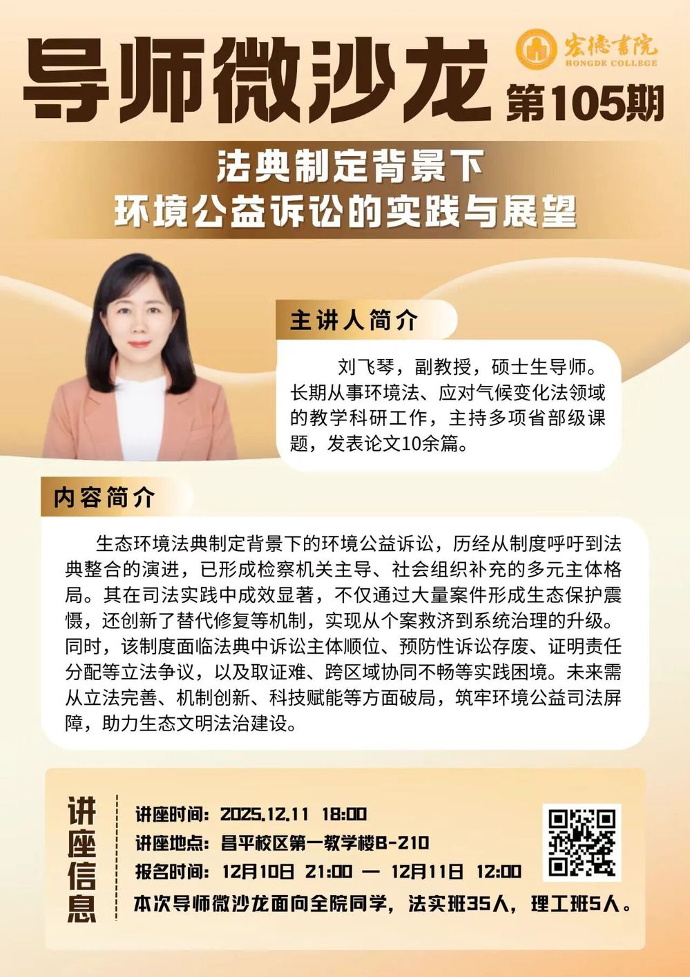 导师微沙龙 | 第105期报名: 法典制定背景下环境公益诉讼的实践与展望
