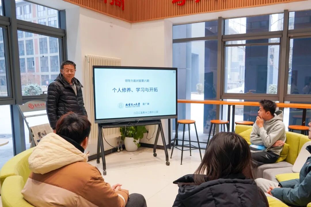 在全球化竞争日趋激烈、创新浪潮席卷各行各业的当下,培育兼具深厚个人修养、持续学习能力与开拓创新精神的人才,成为推动社会进步与组织发展的关键。未来的领导者既要拥有扎实的专业功底与前瞻视野,更需具备凝聚团队、赋能他人的综合素养。12月12日下午,第六期“领导力面对面”活动于宏德书院思语厅成功举办。本次活动特别邀请到了北京化工大学宏德书院院长姜广峰院长,以“个人修养、学习与开拓”为主题,分享他对领导力的深刻洞察与实践经验。